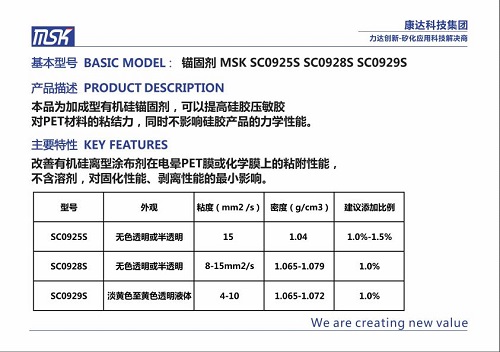 主要經營產品包括是縮合型Si壓敏膠、附加型Si壓敏膠、PU壓敏膠、UV減粘膠、觸摸屏保護膜HC、AG係列和IDM可拉伸係列UV硬化樹脂、AF高水接觸角類硬化樹脂等。 康達科技集團有機矽事業部二部經營產品專業應用在膠帶、UV 硬化等精密塗布行業。